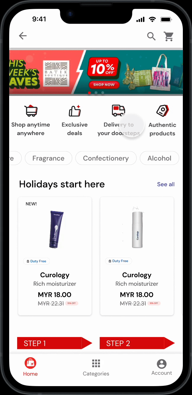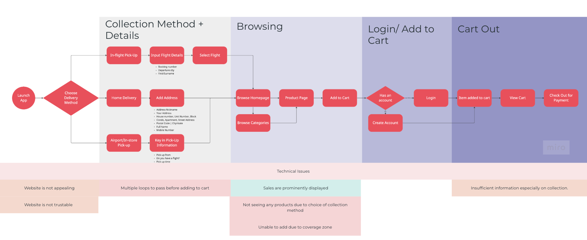 Evaluate existing user flow for travelmall site and identify pain points for anyone who might be interested to buy duty-free